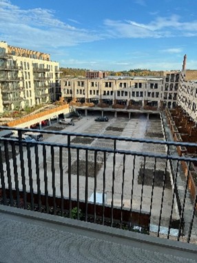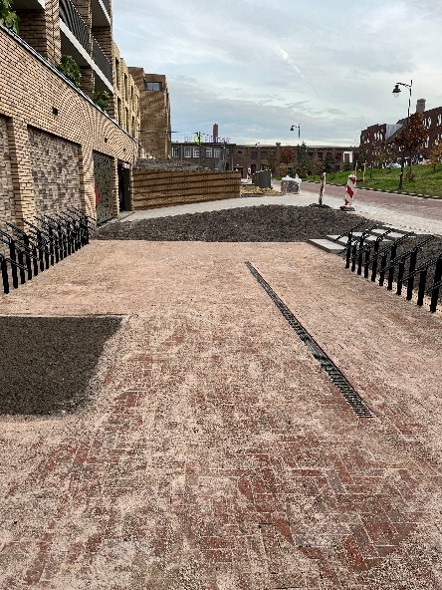 - De aankleding van het binnenterrein is nog niet af. De bomen worden binnenkort geplaatst.